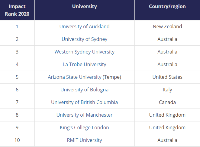 在泰晤士高等教育 (THE) 发布的2020 世界大学影响力排名中,曼大进入全球Top10,全英第一!