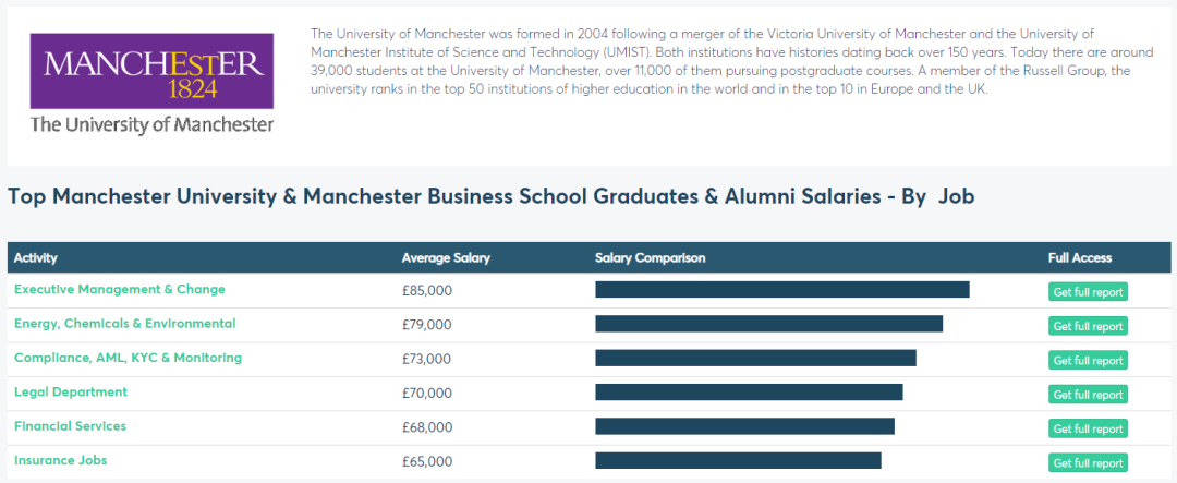 英国权威薪资网站Emolument上的毕业生薪资数据显示,曼大的管理类和金融服务类两大泛商科专业,都排进了毕业生薪资Top5: