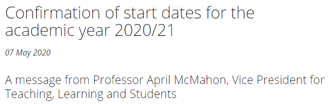 请大家注意,曼大使用了 Confirmation of start ates 。也就是说这是确定一定以及肯定的开学日期,无论上不上网课,开学日期也不会更改了。