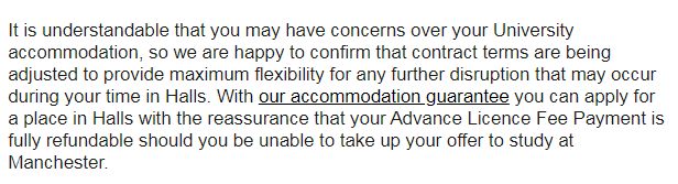 另外曼大正在对住宿条款进行调整,在当前情况下为学生提供更多灵活性。