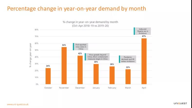 但是,2020年4月咨询量比2019年4月增长了 67% 。