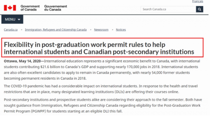 加拿大联邦移民、难民及公民部(IRCC)于5月14日发布有关毕业工签的最新内容:
