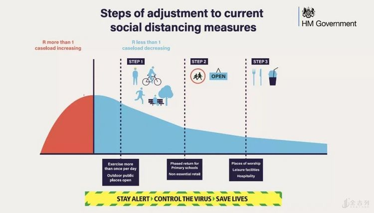 值得注意的是,英国政府的抗疫口号也从昨天发生了变化: 从之前的"Stay at Home"(待在家中)变成"Stay Alert"(保持警惕)。