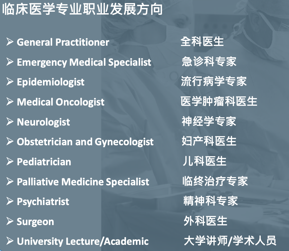 - 全方位临床专业知识培养: 所有临床医学专业学生都会被安排轮转不同科系学习,有机会参与诊疗、急诊、和手术等一系列专业实践。临床医学专业学生在本科学习阶段,并不会固定学习某一个科系,而且是进行全科系的轮转学习。在全面的学习之后,导师会根据学生的具体表现,给出一些未来发展方向的建议,当然,对于以后职业发展的选择还是同学自己手里。