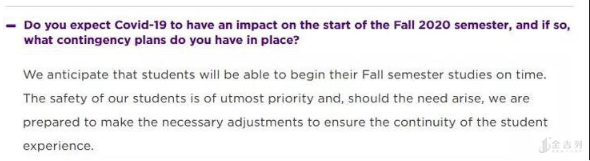 在美国目前暂停了全球所有的签证服务的情况下,国际学生能否在秋季开学前获批签证到学校报道成为最大的未知数;针对国际学生这个情况,NYU给出了解决方案:学期开始时线上上课,抵达校园后开始线下教学。
