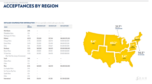 UMich MAcc历年的就业表现都非常出众,毕业3个月内100%的就业率一直是这个项目为之骄傲的根本。 如此出众的就业表现离不开两点: