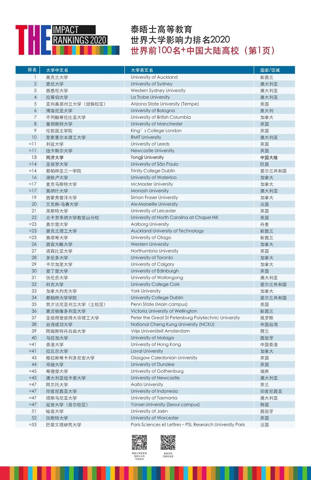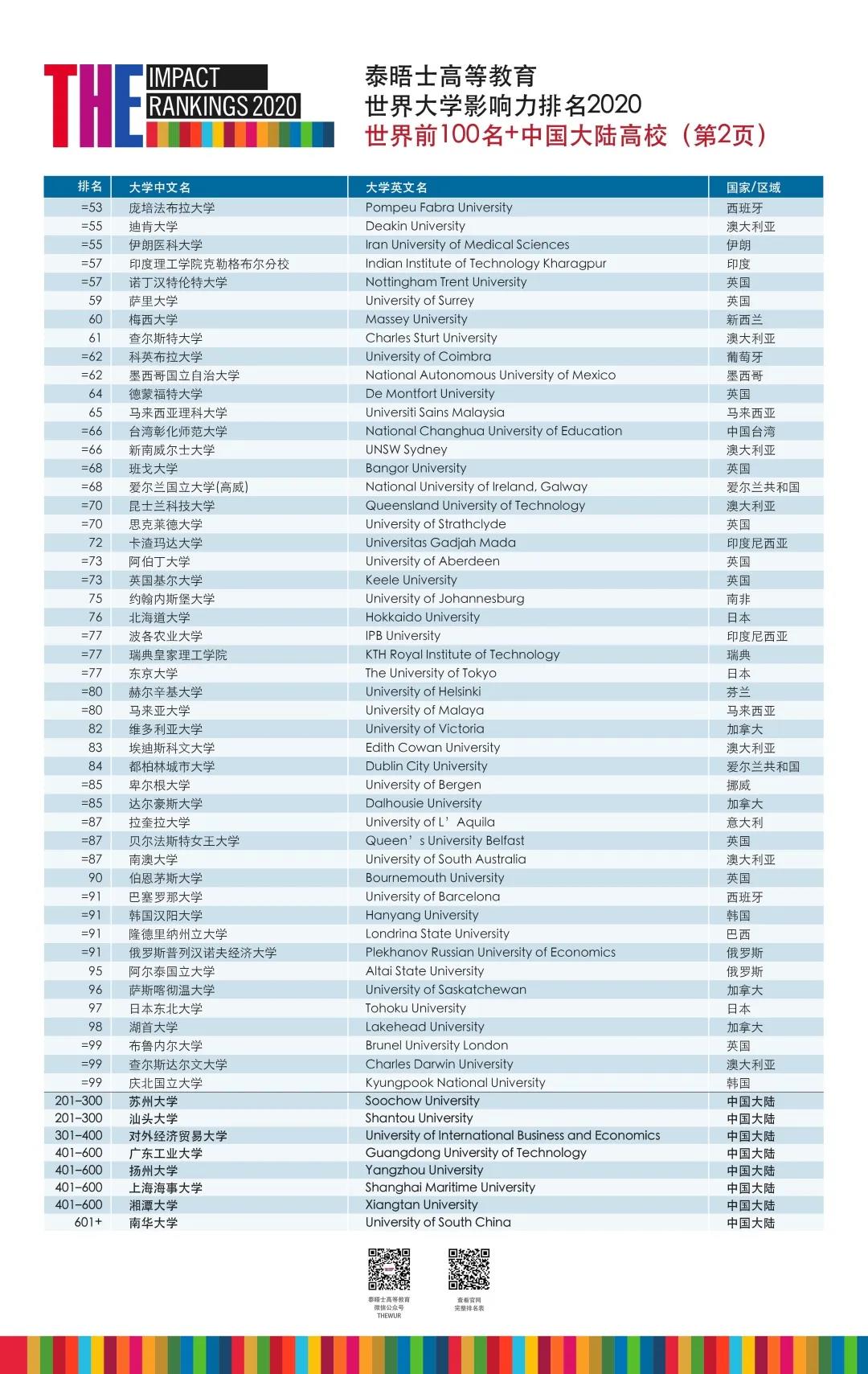 泰晤士高等教育发布了第二届“泰晤士高等教育世界大学影响力排名”。