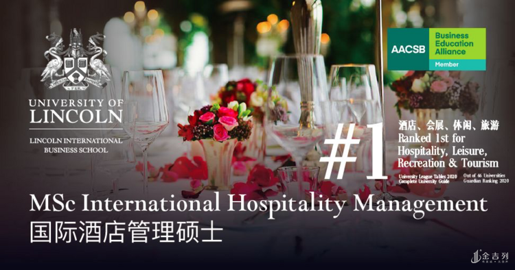 林肯大学在《卫报》2020大学指南、2020完全大学指南中,酒店、会展、休闲、旅游类专业全英排名#1