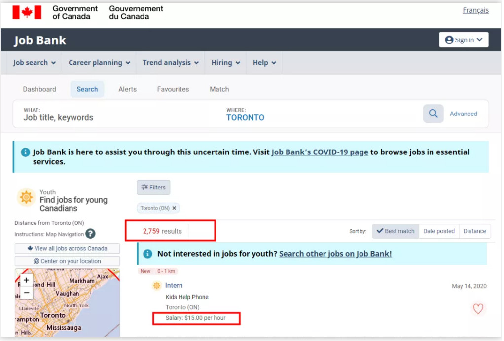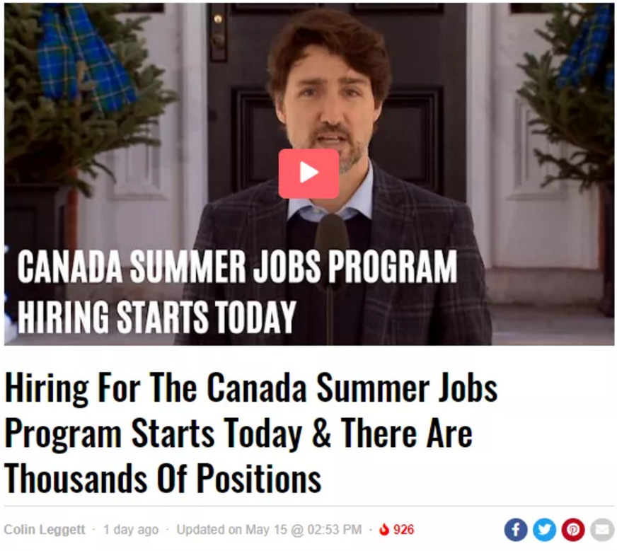 加拿大总理特鲁多在5月15日的讲话中宣布该计划正式启动,并建议所有的学生和应届毕业生通过政府提供的“工作银行(jobbank)”寻找工作,目前该平台提供6万多个职位,特鲁多表示,未来几周还将增加数千个。