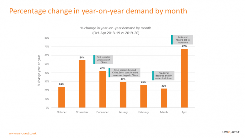 但是,2020年4月咨询量比2019年4月增长了 67% 。