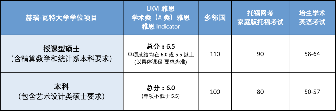即日起,使用 符合如下要求的,包括多邻国在内的七种语言考试成绩 ,或从现在 开始合理安排备考时间,并通过线上考试达到以下要求,就可以 顺利成为赫瑞-瓦特2020级新生啦! !!