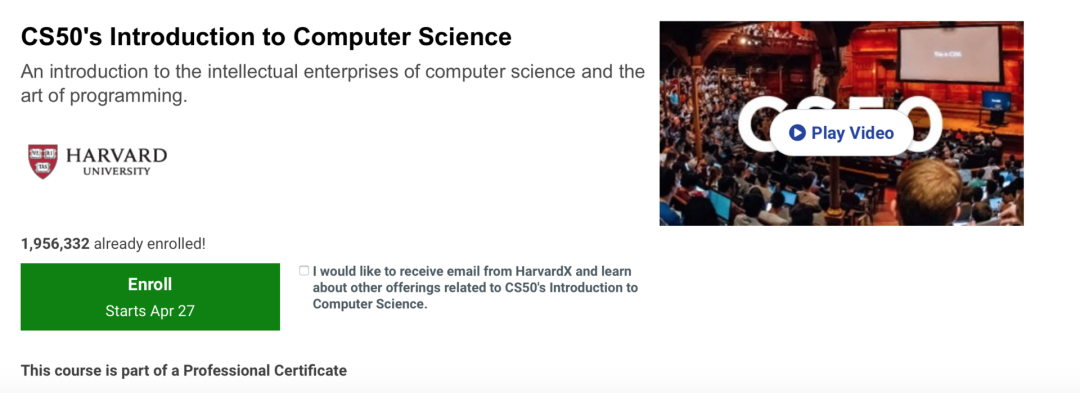 2、适合 低年级,探索专业方向 项目:哈佛大学短期线上课(随时可上,全免费)