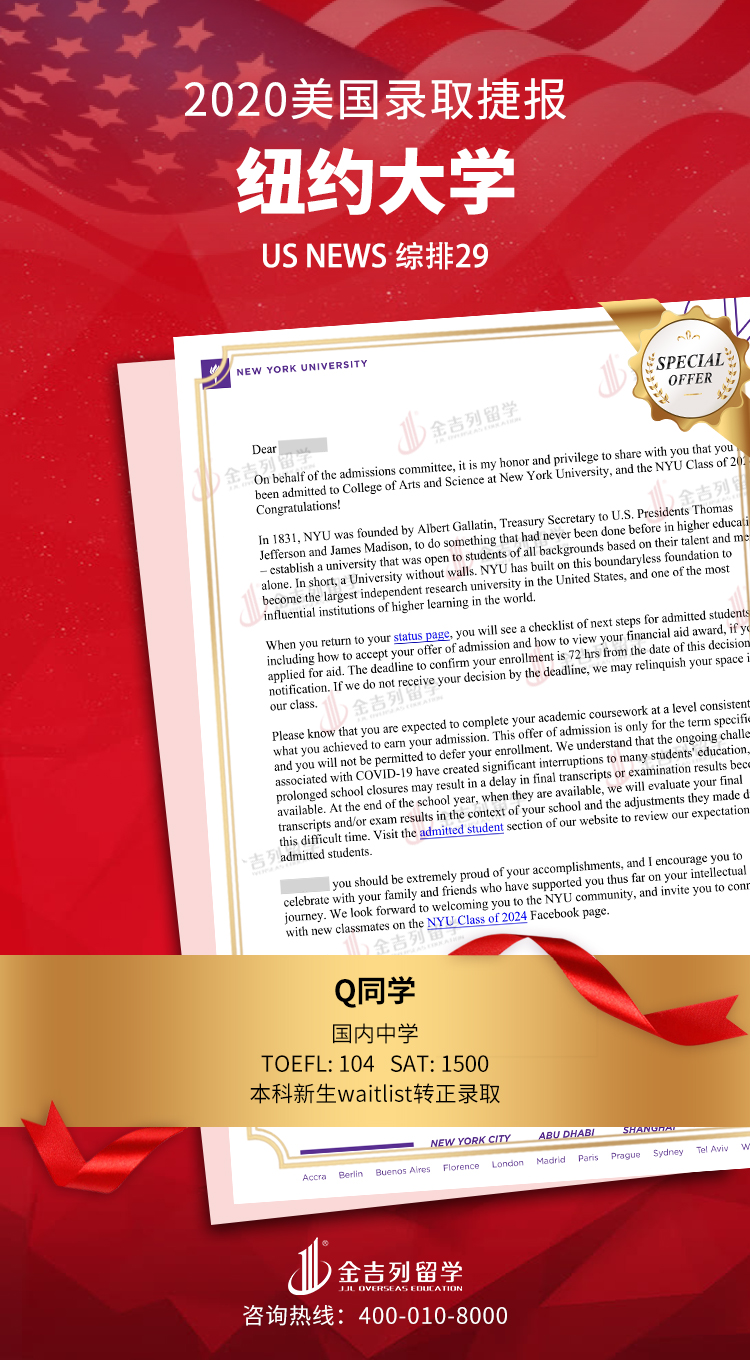 纽约大学(New York University)简称NYU,是一所位于纽约州的世界顶尖私立研究型大学,成立于1831年,由18个学院和研究所组成,是全美办学规模最大的私立名校之一,同时还在中国和阿联酋建有上海纽约大学和纽约大学阿布扎比分校。NYU以丰厚的校友捐赠、研究资金和培育创新才能的教育理念著称,在2019QS毕业生就业能力排名世界第11位,极受雇主认可,全美著名校友总数排名第8位。