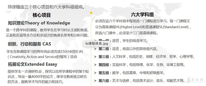 IB Diploma (International Baccalaureate Diploma Programme),是专门为高中生设计的为期两年的大学预科课程,其课程体系具有国际性和挑战性并重视学业质量和社会服务, 而且通过对多元文 化的理解培养学生具有国际视野。