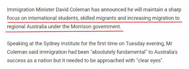 与此同时,科尔曼还表示,国际教育对澳大利亚极其有利,仍将是本届政府移民政策的一个关键特征和主要特色。