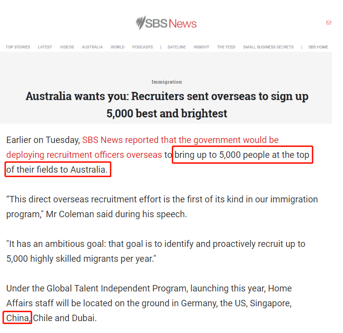 同时,移民部还宣布了一项重大决策:澳洲政府将在今年正式启动——全球人才独立计划(Global Talent Inepenent Program),每年在海外招揽5000名各领域顶尖人才来澳。移民局专员还会在中国、美国、新加坡、德国、智利、迪拜等国设立办事处,每年为澳洲吸纳人才。