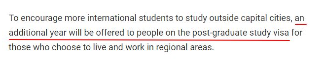 1.额外1年的工作签证(即3年工签)。毕业的学生在获得2年工签的基础上,获得偏远地区额外的一年工作签证。