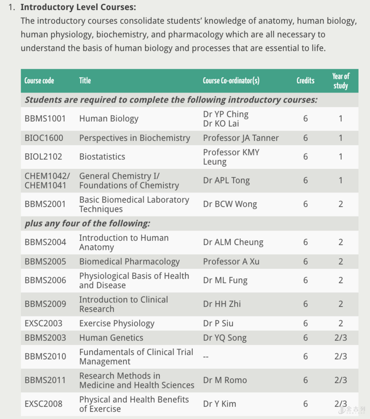 港大生物医学学土课程内容分析