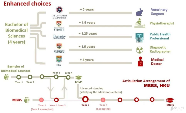 合资质的同学们 更快可于五年三个月内进行港大生物医学学土,及加州伯克利高校的公共卫生服务研究生学位。