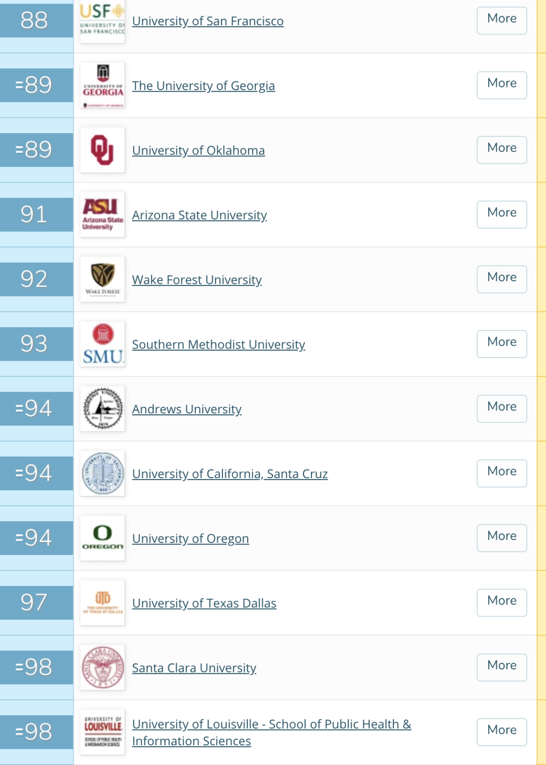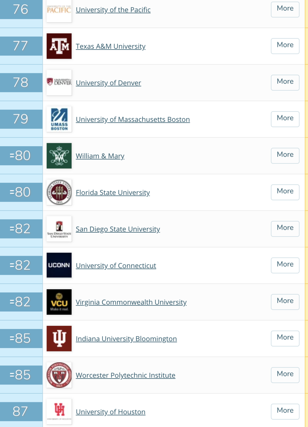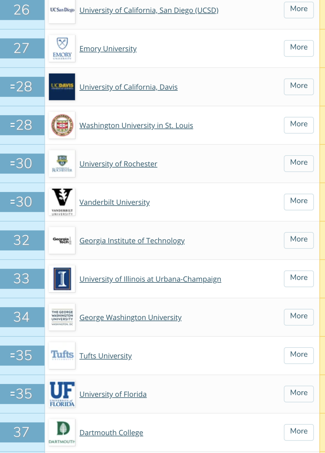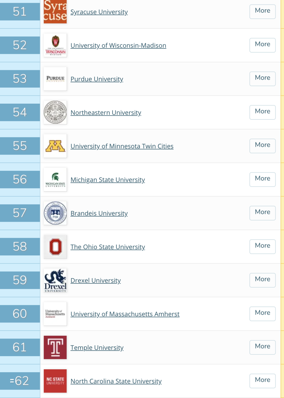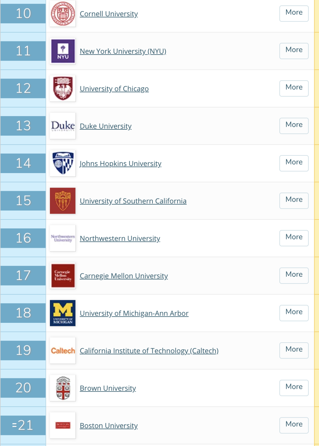 接下来大家就和王老师一起看看全美TOP 100的高校有哪些吧!