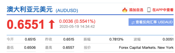 澳元对美元也有了小幅上涨,达到了0.6551。