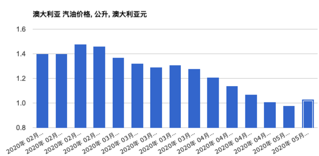 而澳元的汽油油价,也从5月4日的0.98澳元/公升,升到了5月11日的1.03澳元/公升。