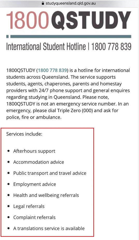 昆州还专门新建了一个Stuent Hub,目前这个在线平台已经开通,可为学生提供心理健康,签证,危机应对和其他基本需求等方面的支持。