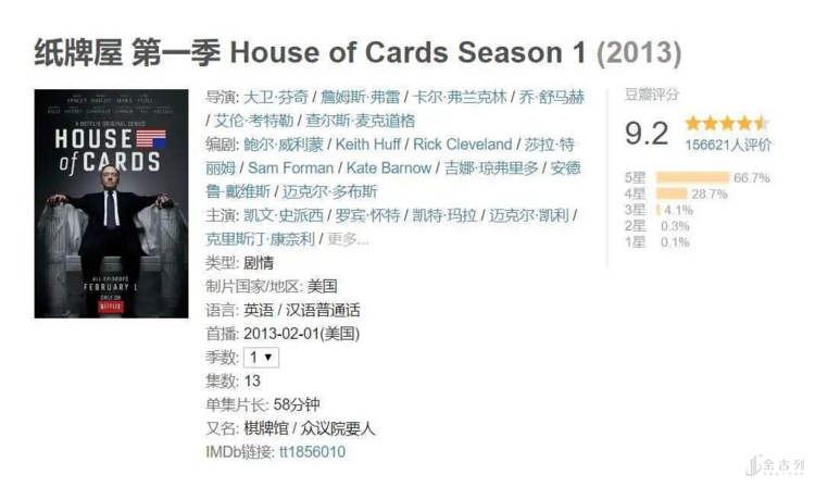 《纸牌屋》这一神剧相信同学们都听说过,一共六季,其中有五季豆瓣评分在8分以上。剧情用一句话概括就是美国政客勾心斗角的故事,又称“白宫甄嬛传”。