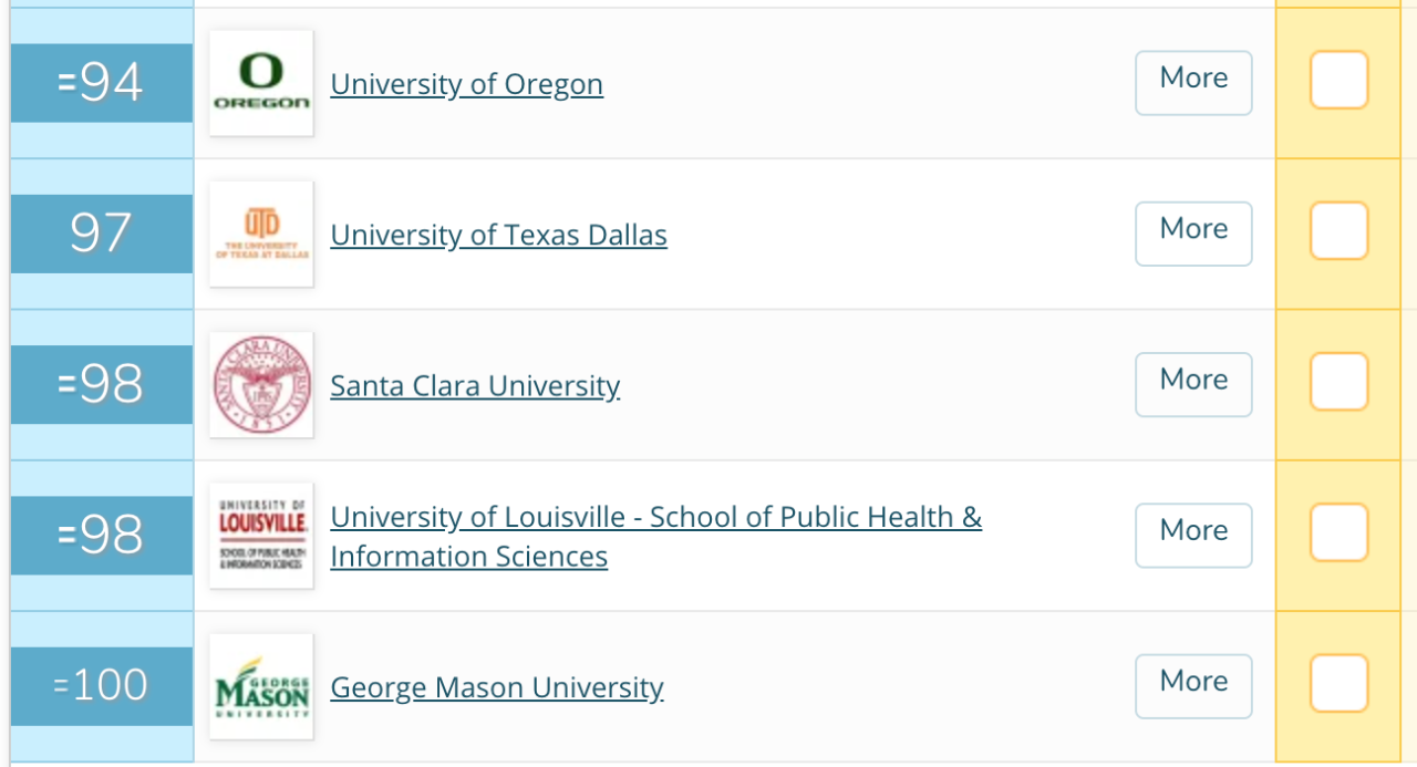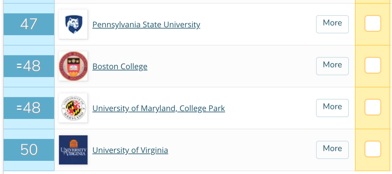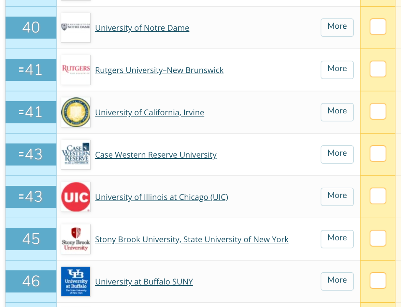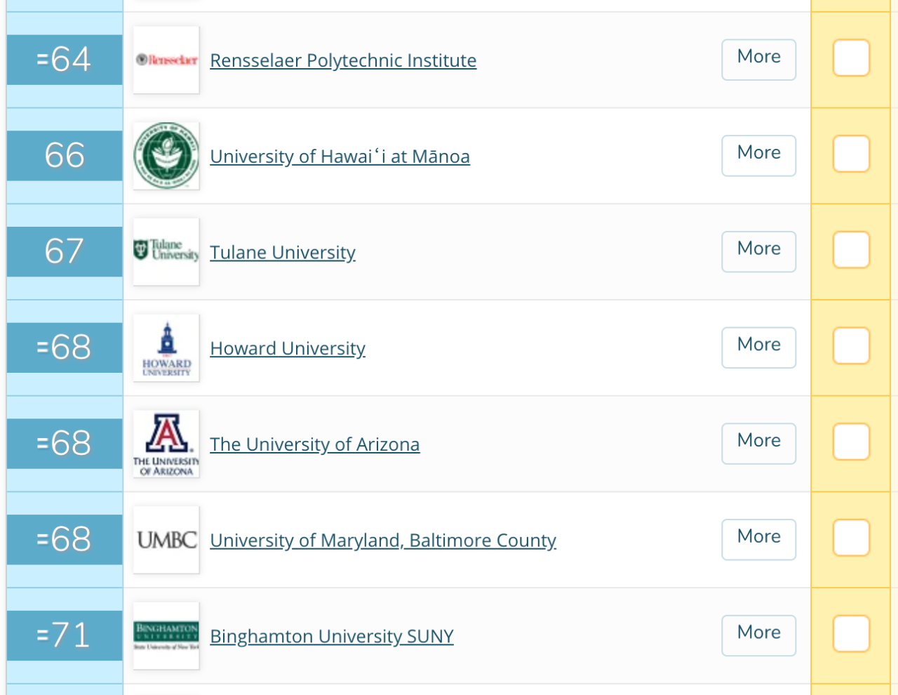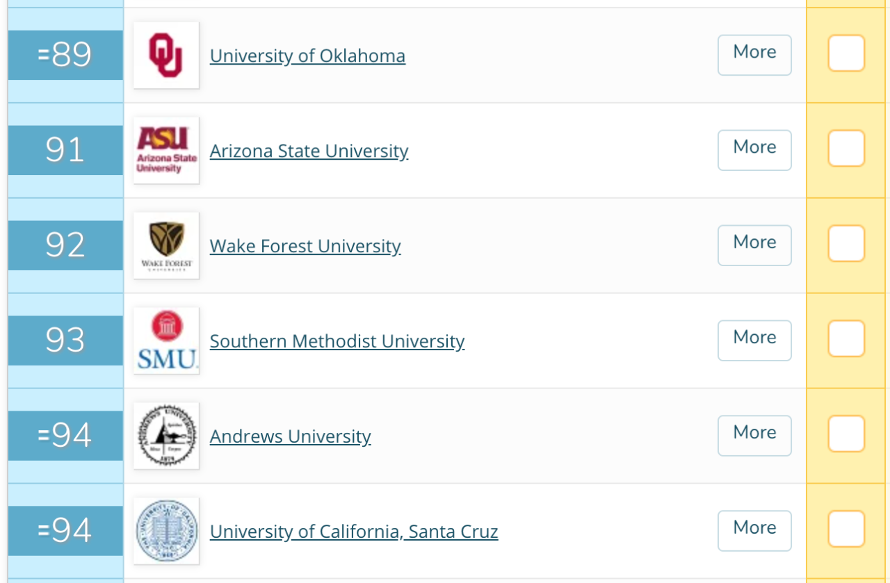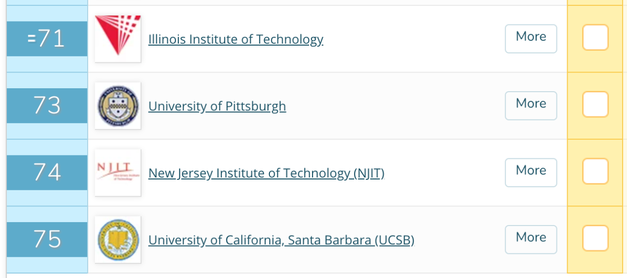 哈佛大学、斯坦福大学、MIT、加州大学伯克利分校、哥伦比亚大学、加州大学洛杉矶分校、耶鲁大学、宾夕法尼亚大学、普林斯顿大学、康奈尔大学。
