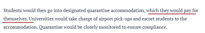 在提案中也呼吁政府和学校与航空公司合作,以促进航班和处理定价问题。在学生们抵达澳洲后,大学会负责进行接机,将他们统一送往指定的隔离宿舍,并密切监测学生的身体状况和疫情监测,