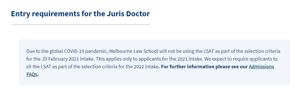 墨尔本大学针对2021年申请JD法学硕士的学生取消LAST成绩的要求!