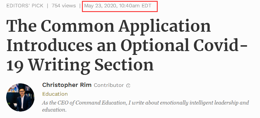 A Forbes series on the messages from college amission leaers quotes Jim Rawlins, assistant vice presient an Director of Amissions at the University of Oregon, encouraging the use of this new section: “when you are given the chance to share practical impacts Covi-19 ha on you, such as your eucation environment, or your family’s health or work/income, it’s okay to share. That will help us put your acaemic recor (an everything else) in the right context…”.