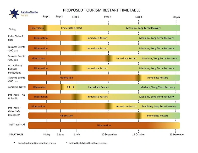 在5月22日的最后一次会议上,工作组会见了旅游部长Simon Birmingham,并批准了涵盖国内旅行和活动以及国际旅行的时间表。