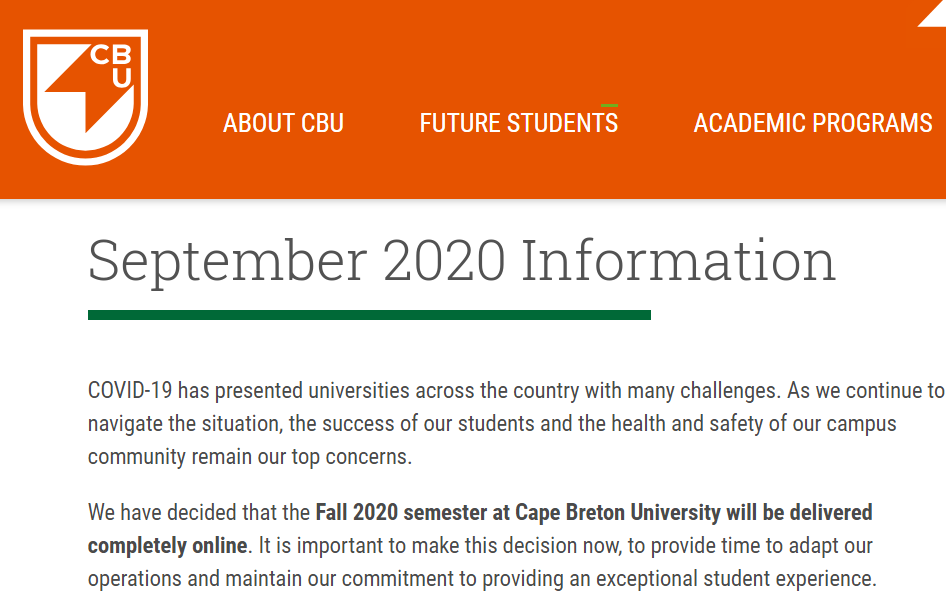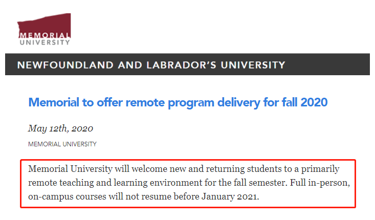 近期,加拿大部分本科院校陆续发布官方通知,决定将2020年秋季学期改为线上授课,目前已经官宣的学校列表如下。
