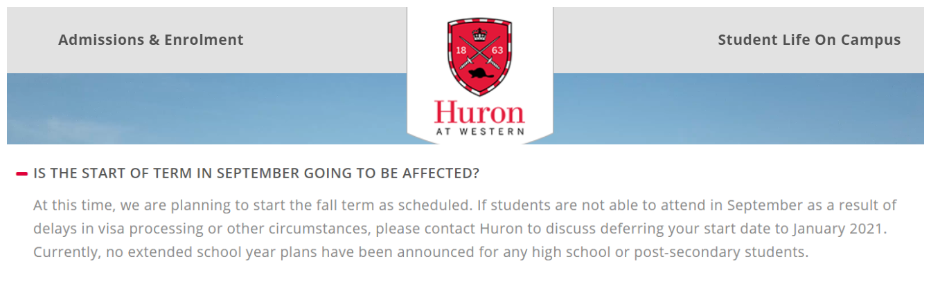 2020年9月开课, 将主要使用远程教学, 在2021年1月之前,学校将不会全面恢复校园面授课程,请等待有关流程的进一步通知。