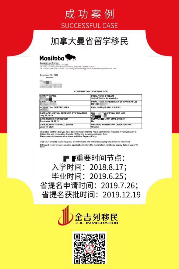 ① 在曼省从事的职业属于紧缺职业,和曼省所学专业对口,毕业获得Job Offer后即可提交省提名EOI;