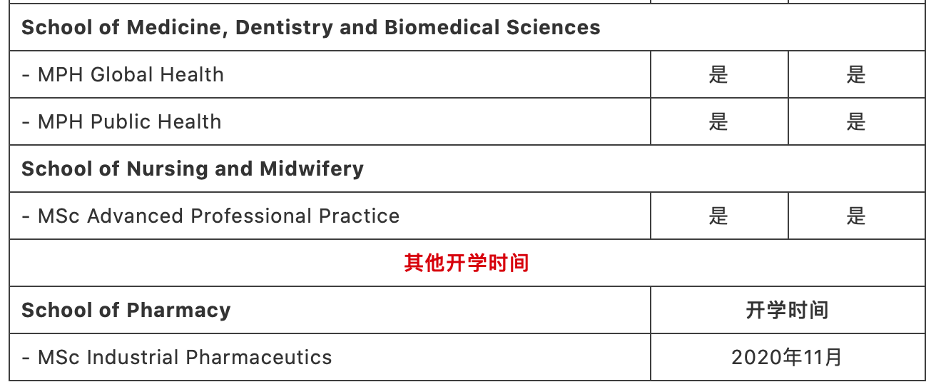 - 不在列表上的课程,会按照录取通知书上的原定计划2020年9月开学,且offer-holers不会收到开学日期变动的邮件通知。