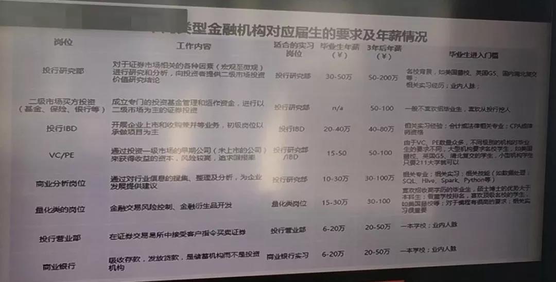 之前看过一张图,是 国内不同类型的金融机构对应届生的要求及年薪情况