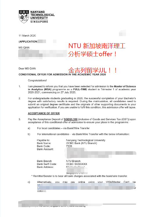 恭喜qian宝宝,南洋理工大学-分析学硕士录取!