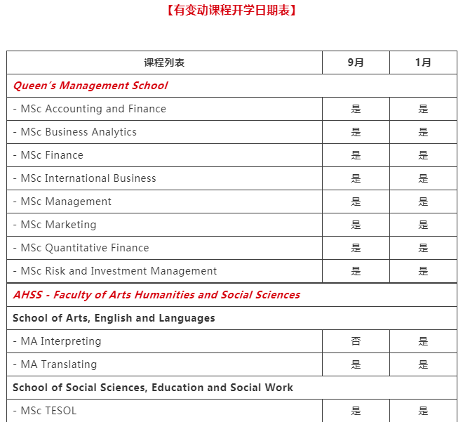 个别硕士课程取消2020年9月开学,开学日期推迟到2021年1月。(课程列表见下文)