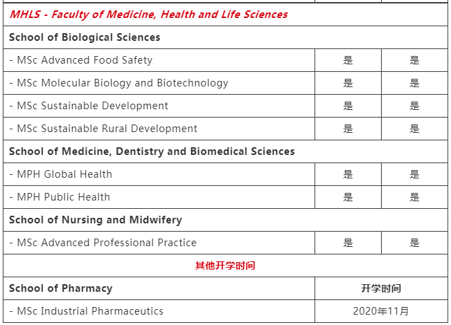不在列表上的课程,会按照录取通知书上的原定计划2020年9月开学,且offer-holers不会收到开学日期变动的邮件通知。