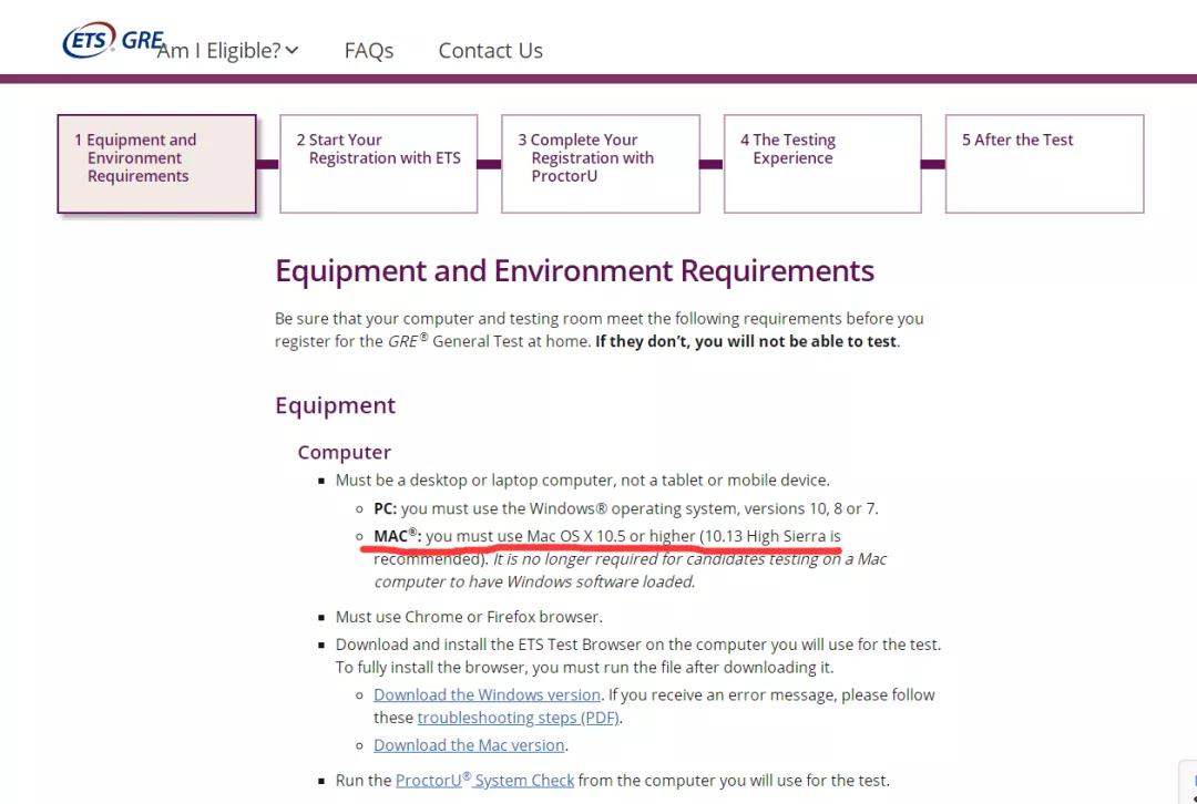 苹果电脑Mac系统也可以参加在家考GRE,要求OS X 10.5及以上系统,在苹果电脑上测试的考生不再需要加载视窗软件。