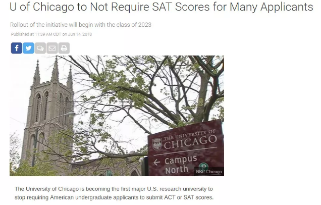 作为全美排名第 3名、仅次于普林斯顿和哈佛的芝加哥大学,最近于 6月14 日发表声明,宣布 本科申请无需提交 SAT或ACT成绩, 并发布最新巨额奖学金新规定! 虽然在美国已经有数百所大学不要要求申请者提交 S AT或ACT, 但是芝加哥大学是 TOP 20 里面第一所提出此政策的大学。