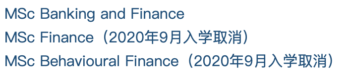 关于上文中提到的msc finance和msc behavioural finance,由于2020年9月入学取消,通知预计于今天之内下发,同时会提供不同选择给到学生,请收到相关邮件后根据学生的选择进行不同操作。
