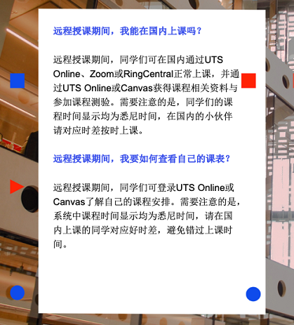 那么,这篇文章就来和大家科普一下关于悉尼科技大学UTS Insearch学院关于远程授课上课地点、个人课表查询、校园邮箱技术帮助、以及课程信息等方面的常见问题吧!