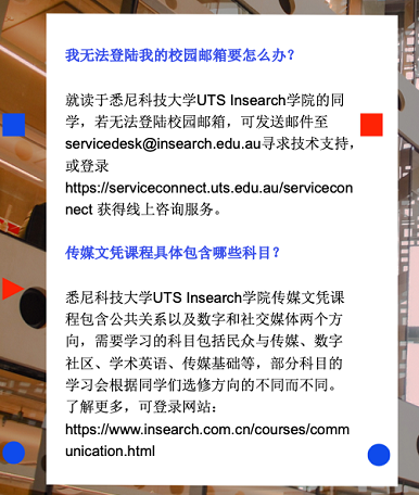看完这些问答,是不是解答了你心中的疑惑呢?如果同学们还有更多关于悉尼科技大学UTS Insearch学院相关的问题,欢迎在留言或在后台私信小编咨询。