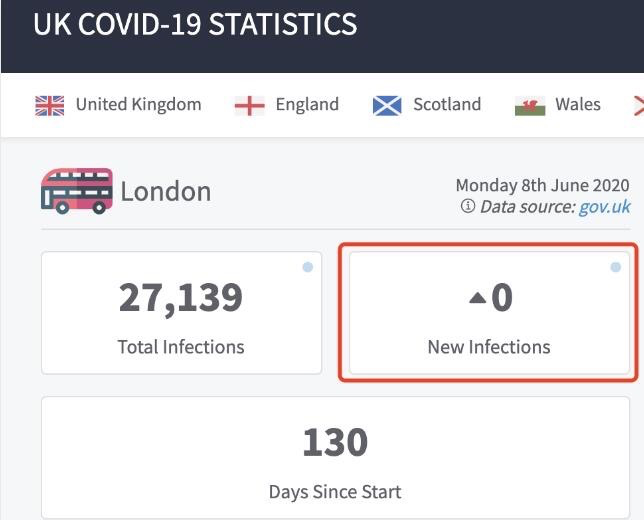 而今天伦敦的各大医院没有任何新的死亡人数报道,已经是伦敦连续第二天无新增了,真是感觉曙光就在前方。