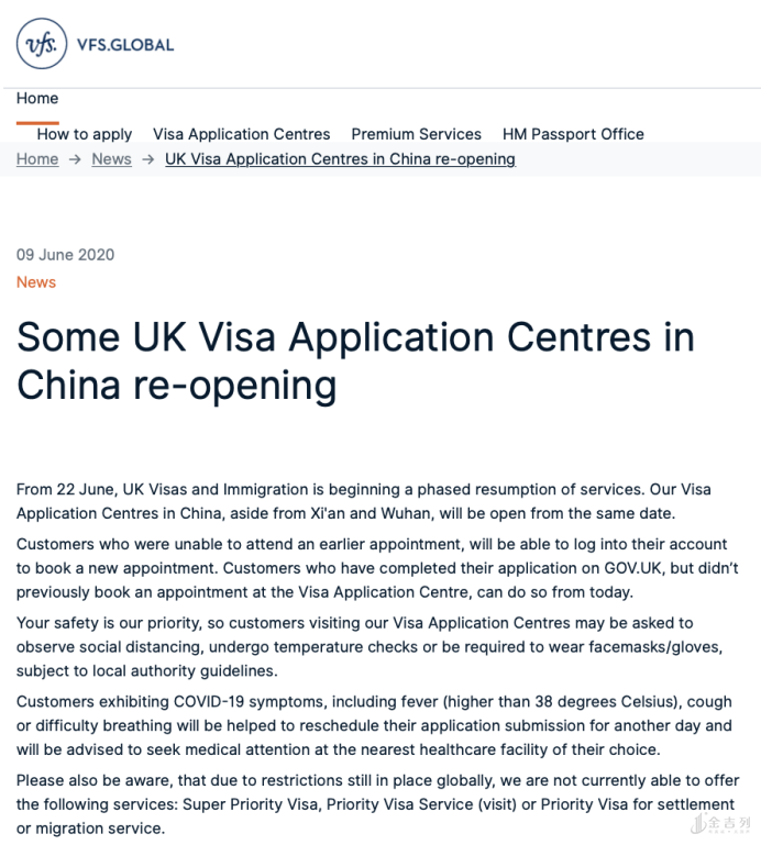 继部分位于中国的 签证中心 (北京,上海,广州,重庆) 于6月 1 日 开放之后,英国当地时间 6 月 9 日,移民局再次宣布,自 6 月 22 日起,除去西安、武汉的其他中国大陆地区英国签证中心将全部重新开放!