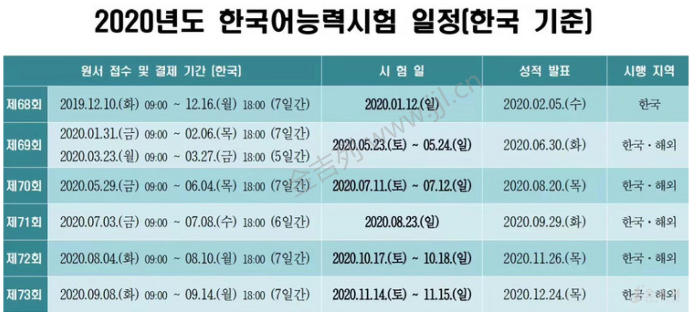 由于受到新冠病毒疫情影响,2020年韩国语能力TOPIK考试日程做出如下调整,同学们根据自己申请情况及时调整考试报考场次