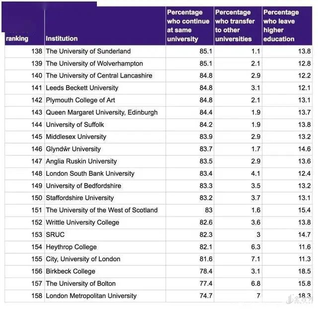 根据158所大学或机构提供的有效数据,统计了英国各个大学的第一学年本科通过率,转学率和辍学率,可以作为大家择校时的参考标准之一。